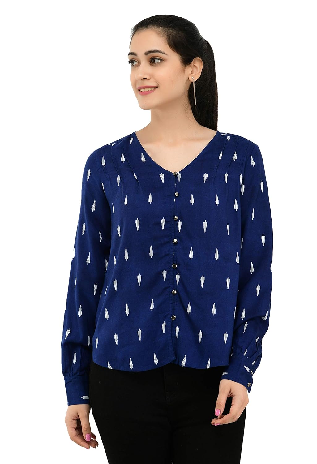 Buy Rue Collection V Neck Full Sleeves Navy Blue Shirt Style Top For Women S Girl S Large At Amazon In